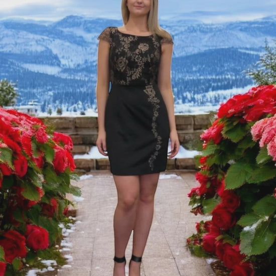 Megan Black and Gold Lace Cocktail Dress