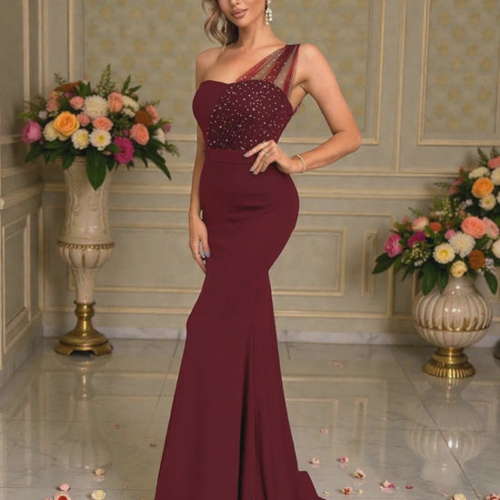 Strapless Dress with diamonte detail and one shoulder feature with a mermaid bottom