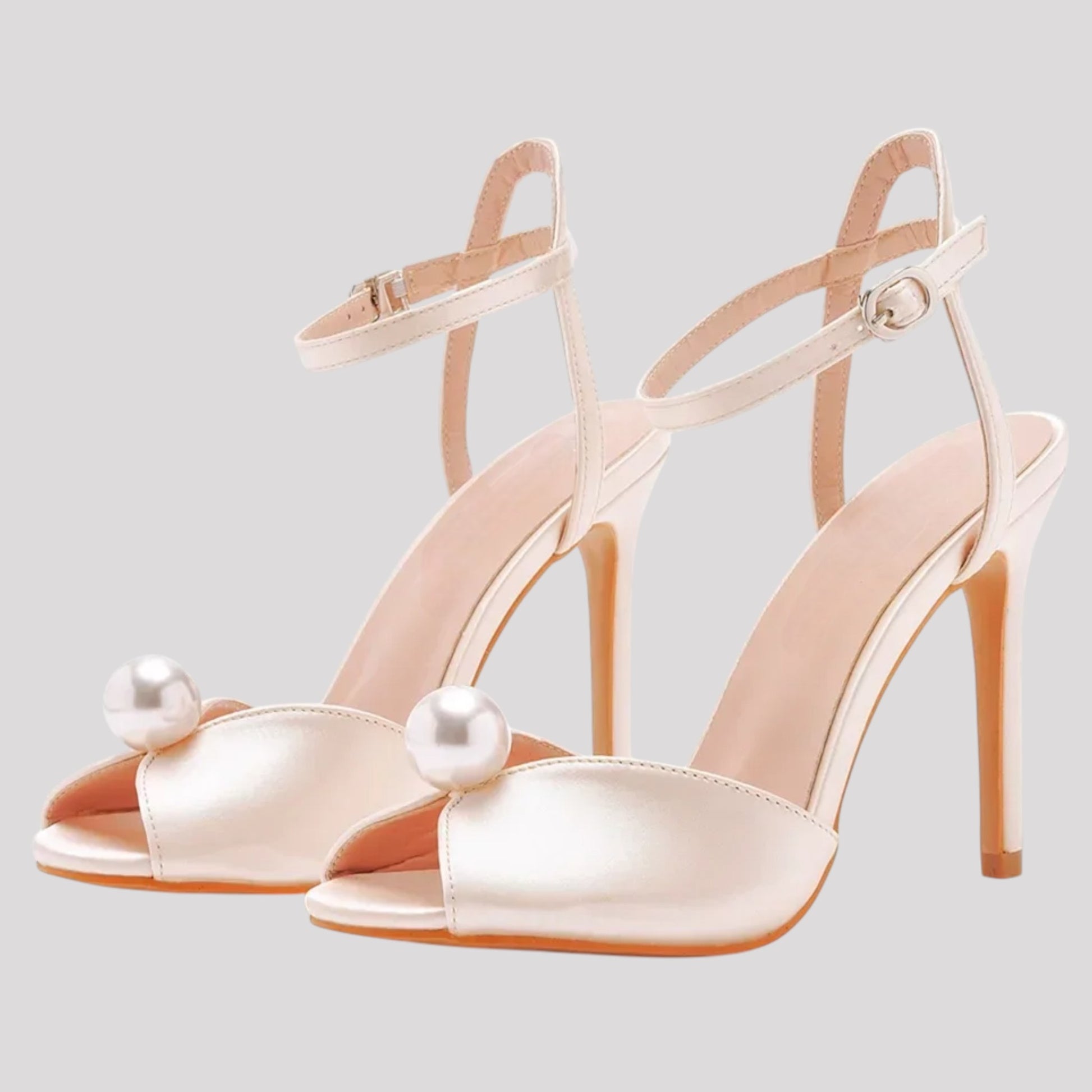Elevate your style with our Strappy High Heels with Pearl Feature. Available in 3 elegant colours, these heels feature a pearl strap and buckle for added sophistication. With a 10.5 cm heel, they are perfect for weddings and special occasions.